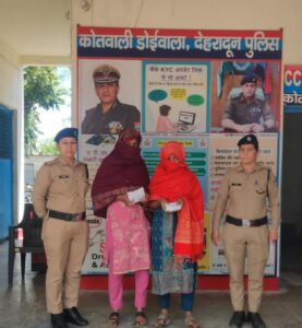 डोईवाला पुलिस द्वारा भुईया देवी मन्दिर, जौलीग्रान्ट, डोईवाला पर आकस्मिक चैकिंग के दौरान 02 महिला अभियुक्ताओ 01- सुमन पत्नी रवि कुमार निवासी माधमपुर कालोनी, मेरठ, उ0प्र0, उम्र 25 वर्ष से 130 ग्राम चरस तथा 02-कुन्ती पत्नी बुल्लू निवासी माधमपुर कालोनी, मेरठ, उ0प्र0 उम्र 30 वर्ष से 125 ग्राम अवैध चरस (दोनो से कुल 255 ग्राम अवैध चरस) बरामद होने पर उक्त दोनो महिला अभियुक्ताओ को नियमानुसार गिरफ्तार किया गया।